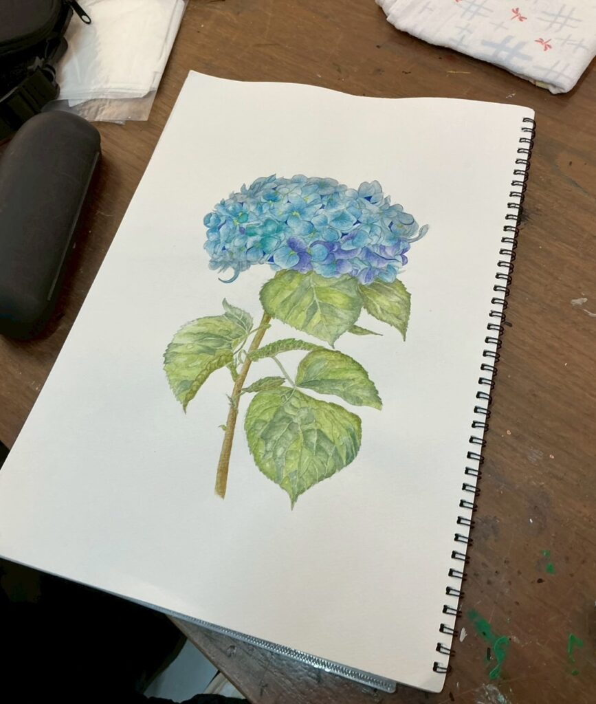 〈透明水彩で紫陽花の水彩画〉