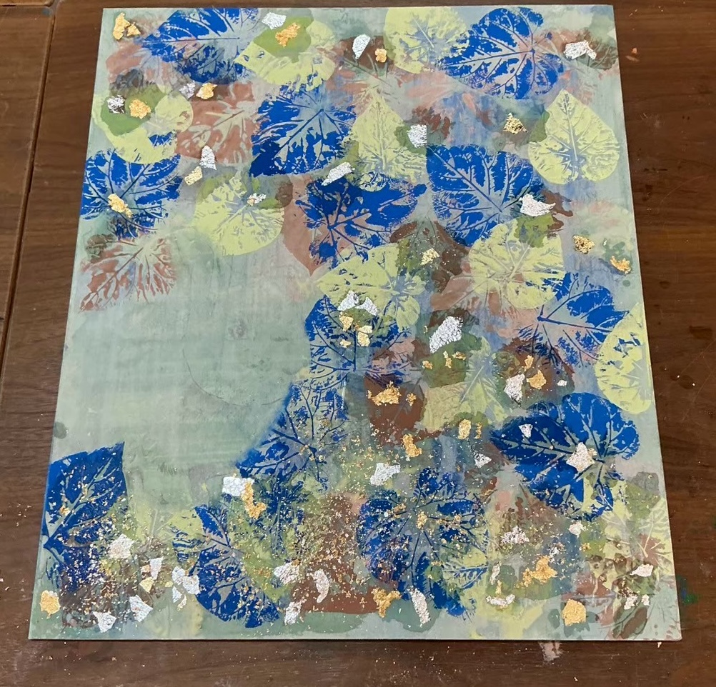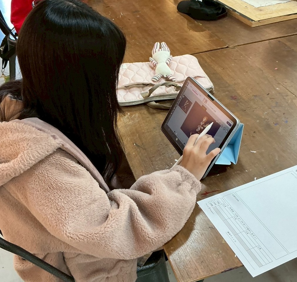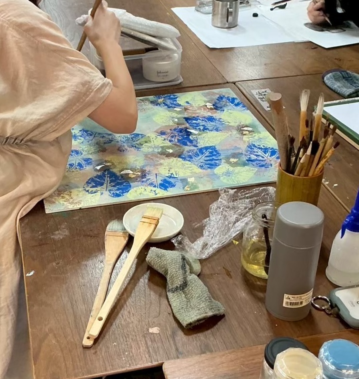 〈初めての日本画作品に挑戦中〉