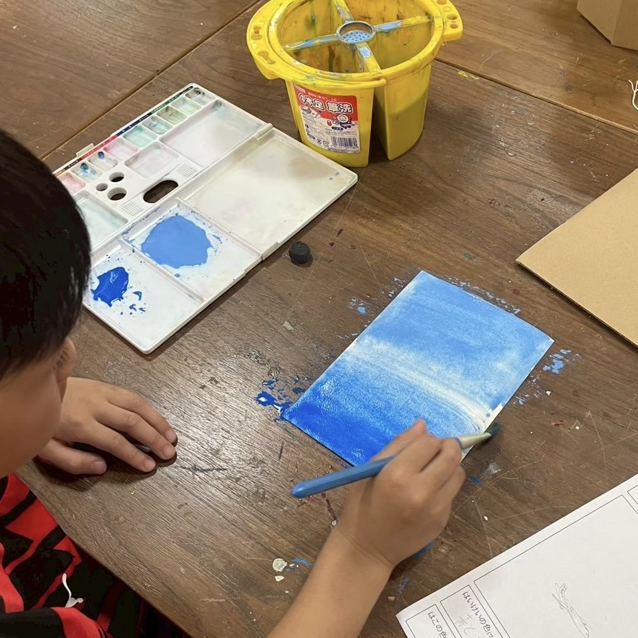 次に2色以上の絵の具でグラデーションの背景をつくります!