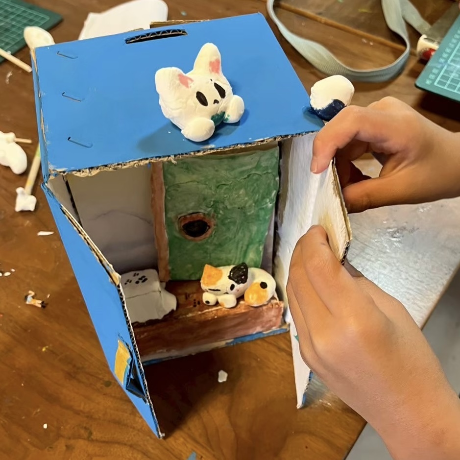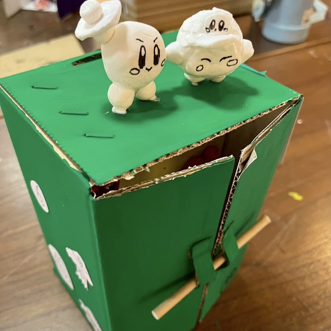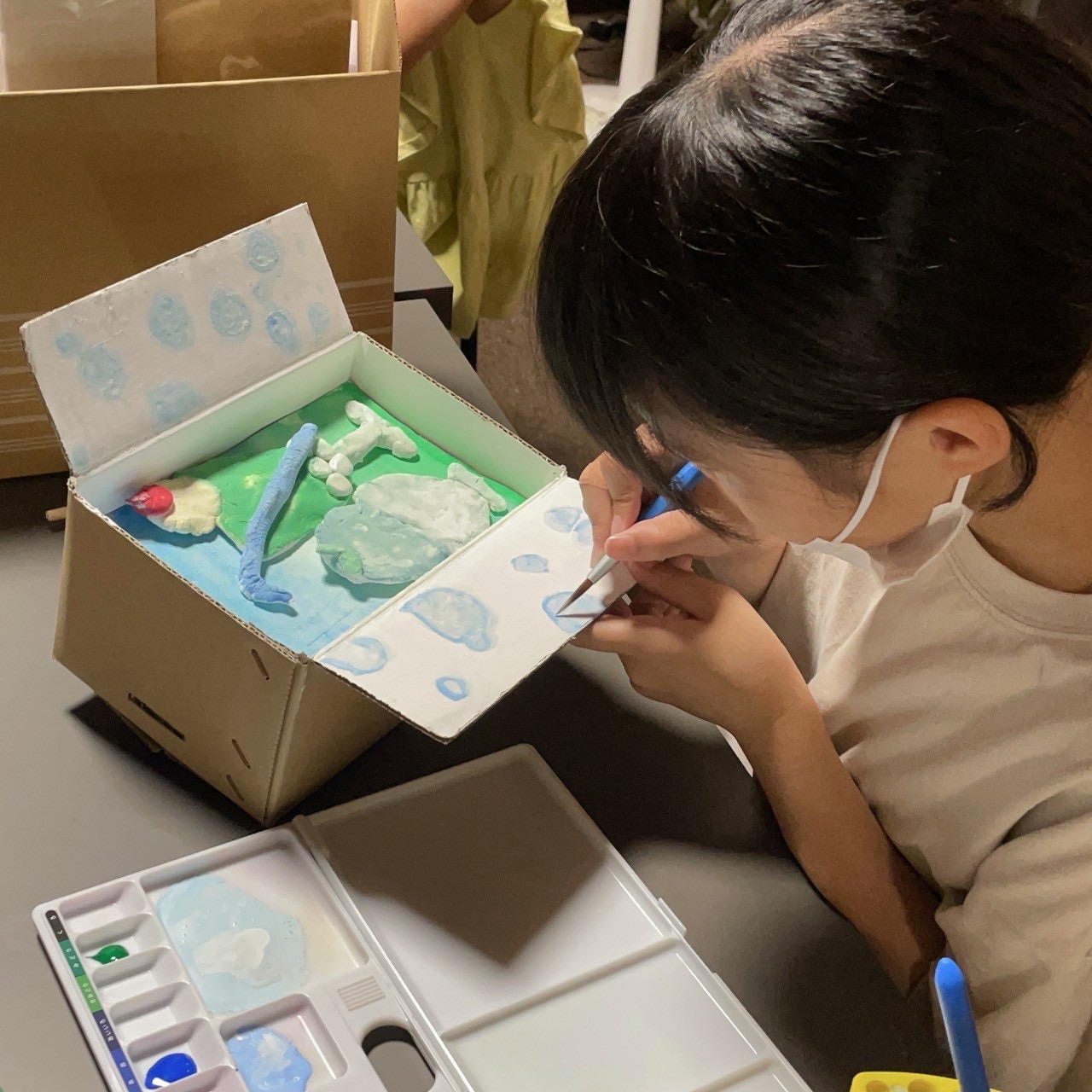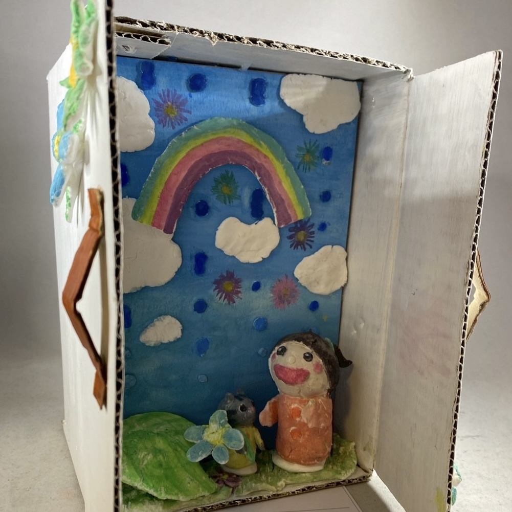 そして箱にの中には粘土を造形して色をつけて、好きなものをとじこめていきます🚪