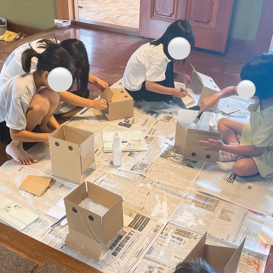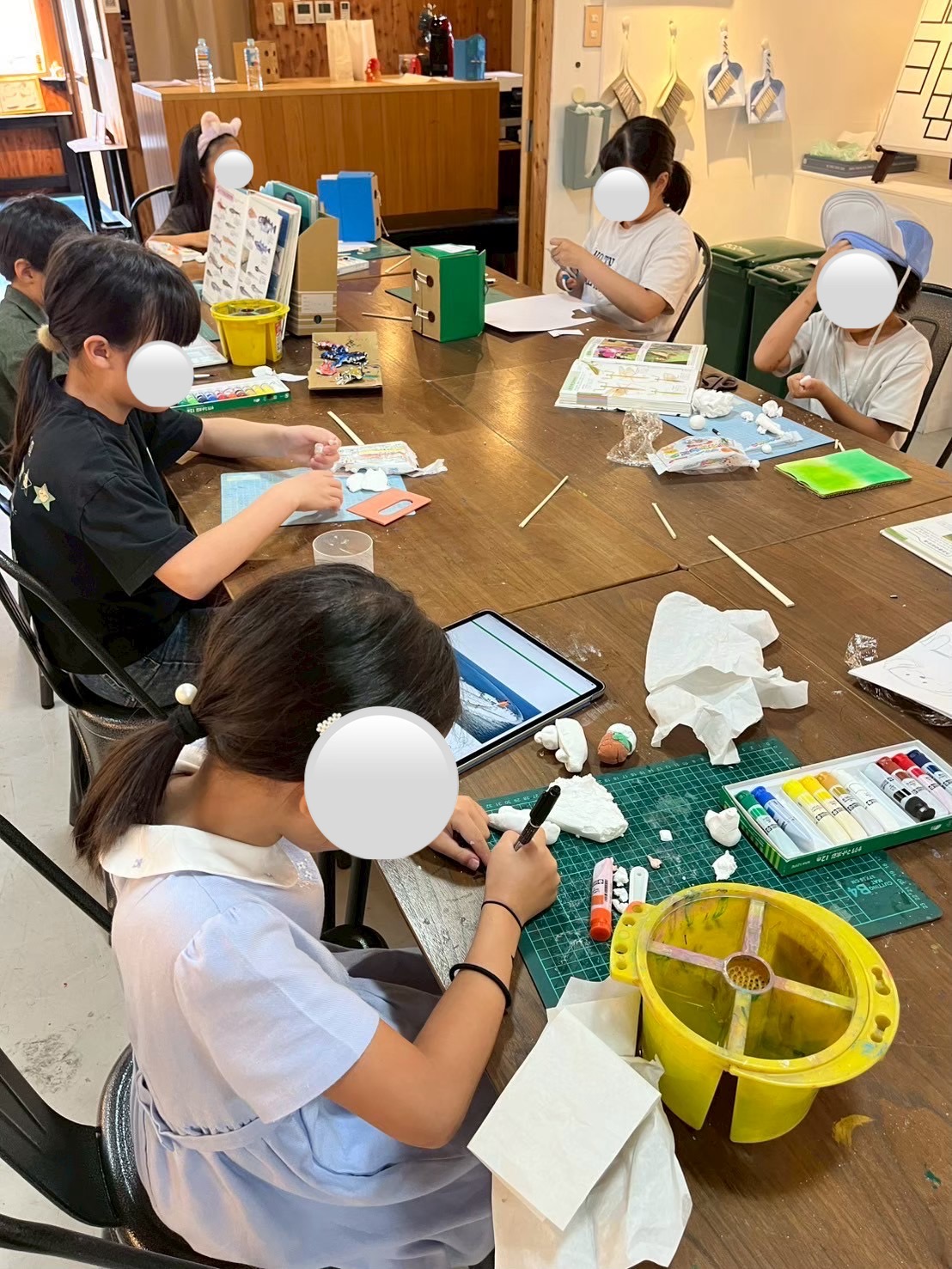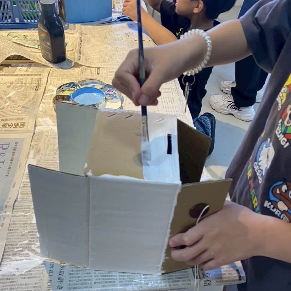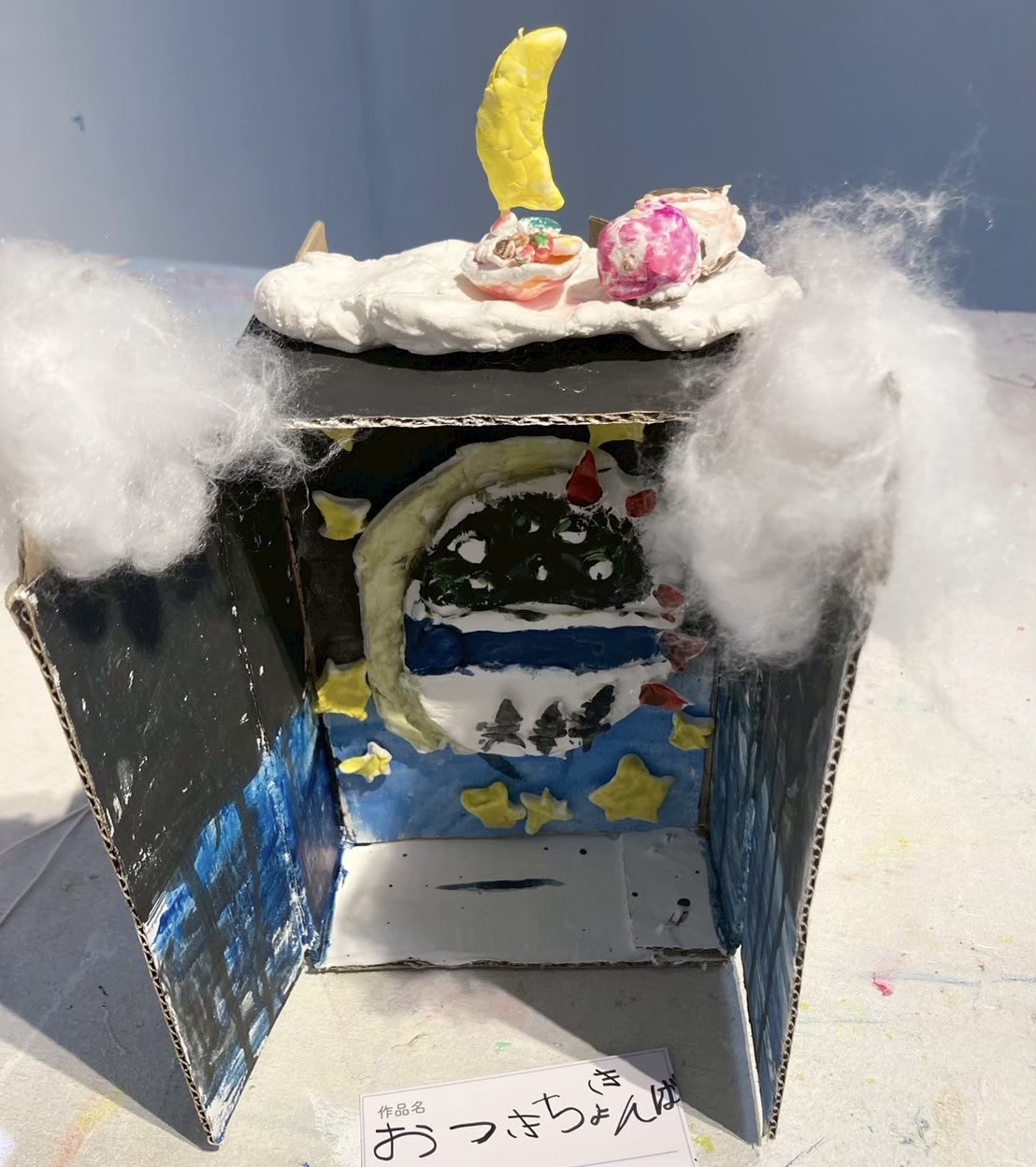 こんにちは!和泉府中教室を担当しています、なつみです☺️ 夏休み、6・7月は貯金箱を作っていました! テーマは「君は何をとじこめる?」 後ろ側はお金を入れて貯金箱にすることができ、前側は扉を開けるととじこめた世界が出てくるようになっています!